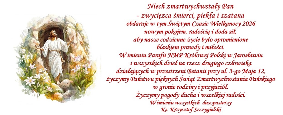 Powyżej życzenia od Księdza Proboszcza w imieniu wszystkich Duszpasterzy, a poniżej rozpisany porządek nabożeństw na resztę Triduum oraz Mszy na same Święta Wielkanocne.